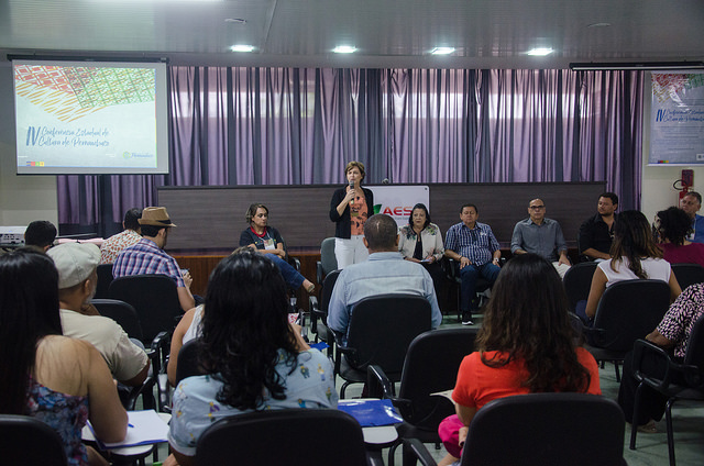 “Essa IV Conferência é muito importante e tem várias singularidades, principalmente por este momento do país, que tem afetado a democracia. Quando nós, do Estado, pensamos a Conferência, esse processo tinha sido interrompido no país (por parte do Ministério da Cultura, que não convocou nova Conferência Nacional de Cultura). Levamos esse debate para os conselhos estaduais de cultura de Pernambuco e a conclusão foi de realizar a conferência. Nas democracias consolidadas, a realização de conferências é prática comum de diálogo amplo com a sociedade civil, todas as vezes em que temas estratégicos precisam ser discutidos e pactuados para o desenvolvimento de uma política pública”, pontuou a secretária-executiva de Cultura Silvana Meireles, em sua fala na última pré-conferência, que reuniu dezena de fazedores de cultura do Sertão do Moxotó, no município de Arcoverde.