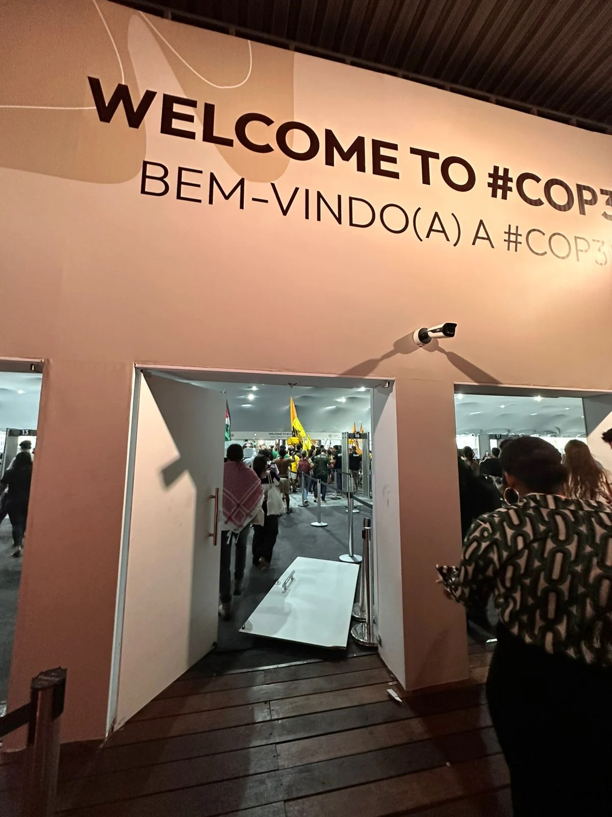 Correndo da polícia e gritando que era necessário taxar os bilionários, pois “é culpa deles que está quente”, o grupo conseguiu entrar no Parque da Cidade, sede do evento. Manifestantes também entoaram gritos contra a exploração de petróleo na foz do Amazonas: “Governo Lula, que papelão, destrói o clima com essa perfuração.”